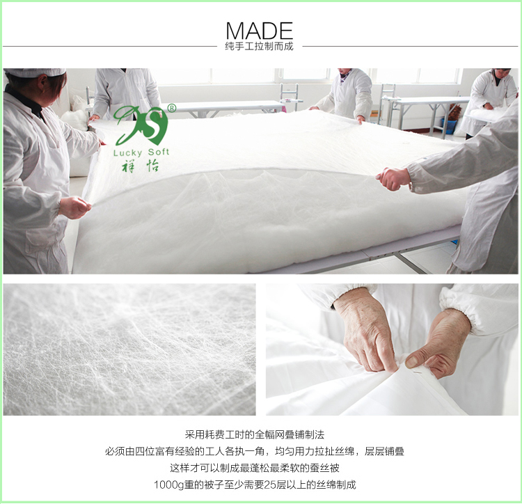 还有一般同行棉布内胎的蚕丝被就没有外被套,我们用纱套内胎的蚕丝被还外加了全棉被套,