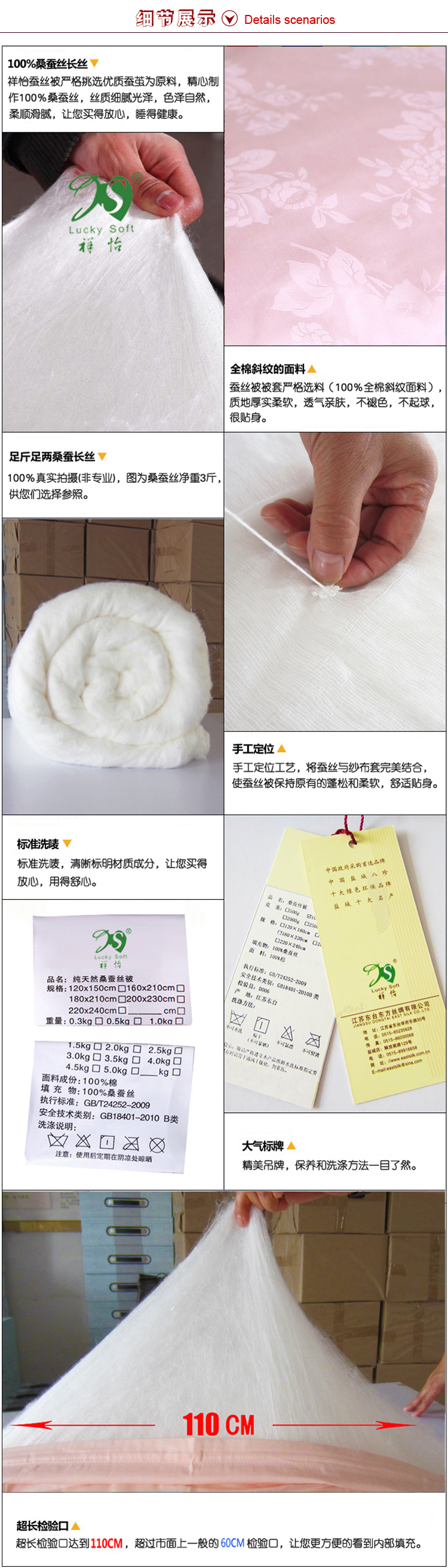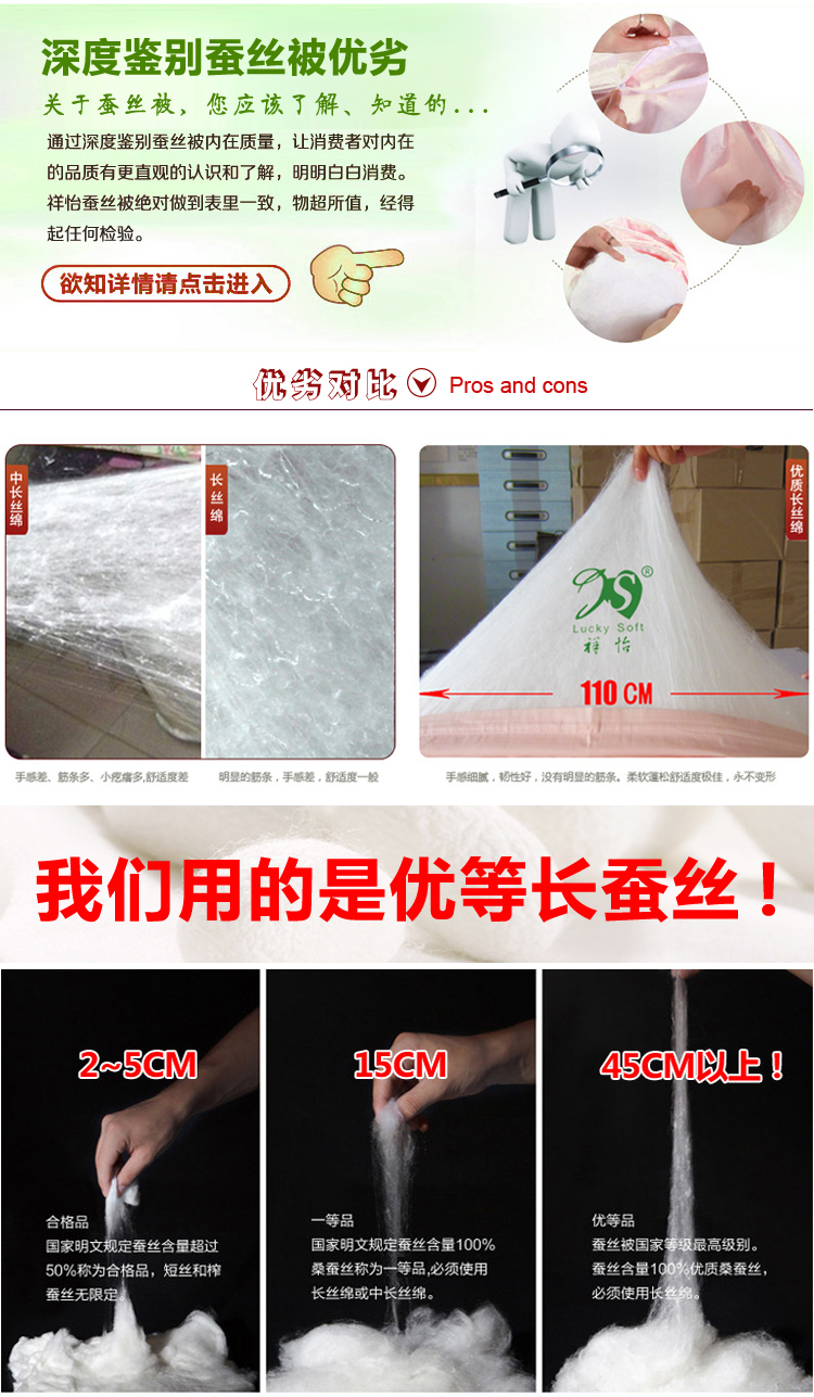 还有一般同行棉布内胎的蚕丝被就没有外被套,我们用纱套内胎的蚕丝被还外加了全棉被套