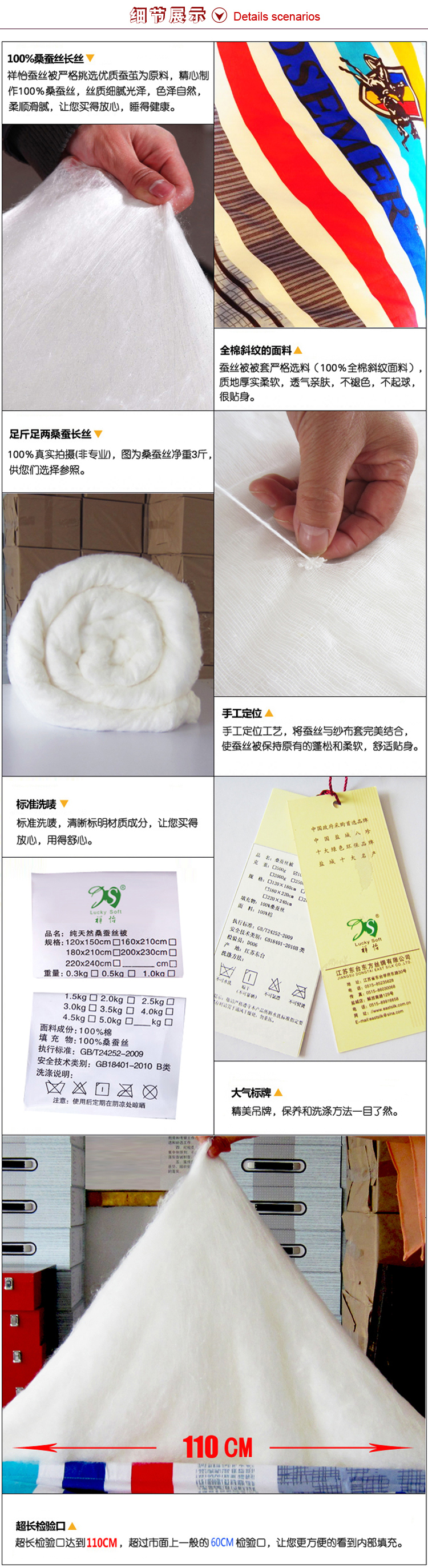 还有一般同行棉布内胎的蚕丝被就没有外被套,我们用纱套内胎的蚕丝被还外加了全棉被套,
